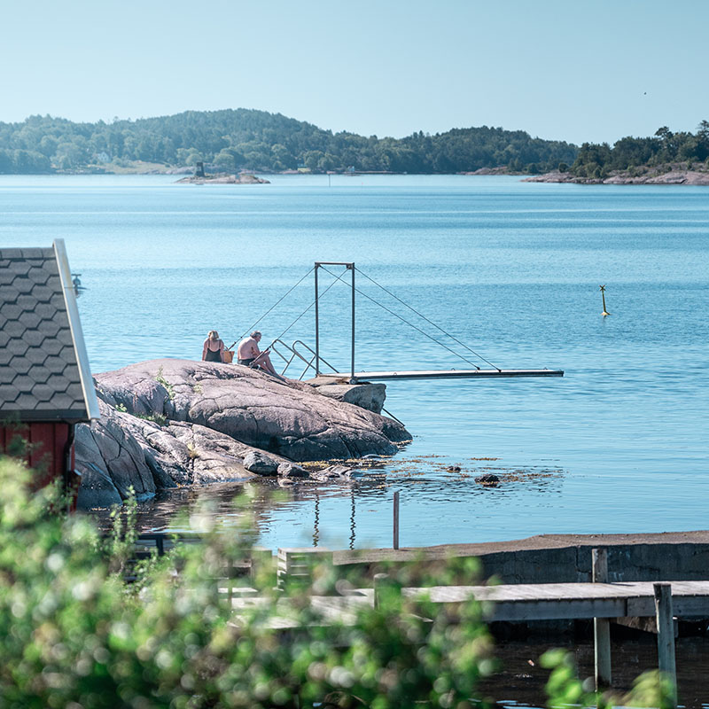 Bading, brygge og svaberg